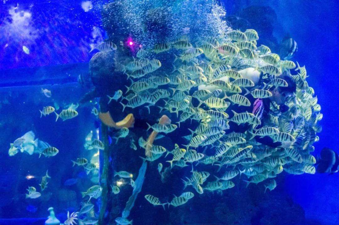 各种各样的海洋生物、海洋动物齐聚一堂,万千熊孩子翘首以盼,不用出远门一样可以感受来自深海的魅力。特别是占地3000多平米的海豚馆, 宽敞明亮,深海蓝的主色调搭配木质小桥的围栏装点,很有云南原生态风格。