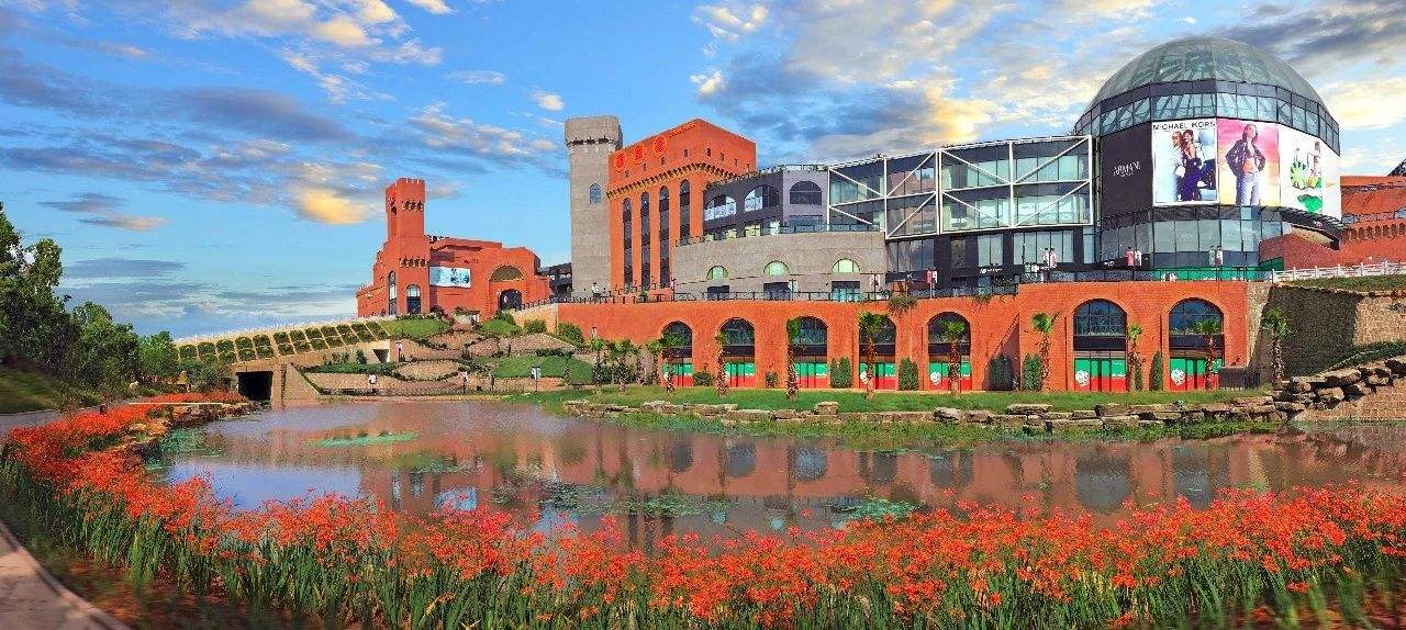 砂之船(昆明)奥莱是一个以古欧洲城堡风格为蓝本的建筑群,设计上充分尊重红土高原的人文地理以及自然资源,整个建筑依山而建,灵动的红砖嵌入厚重的石材,气势磅礴、层次丰富、错落有致,将纯正的意式风格完美融合于云贵高原的生态环境。