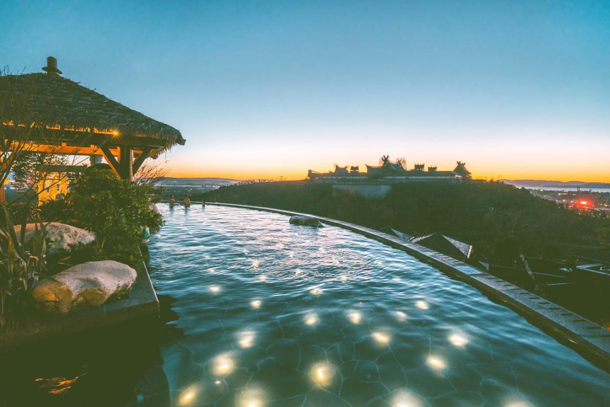 古滇温泉山庄山顶无边泳池是云南地区很好的特色泳池之一。在山顶的无边泳池中自在畅游的同时,可欣赏到滇池及古滇大码头的浩瀚景观及傍晚的夕阳醉美景色。这里不仅可以泡温泉养生,还可以享受美食、娱乐、运动健身、住宿等等服务。