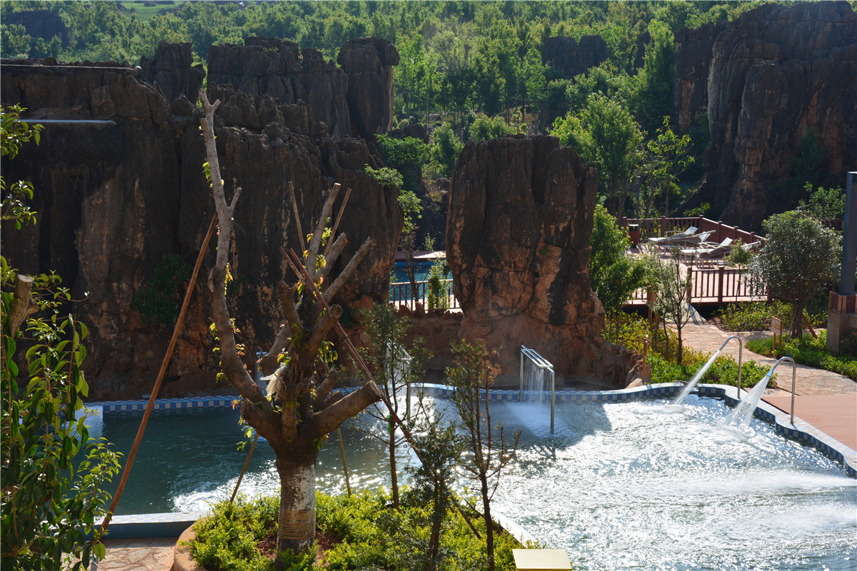 石海温泉的开发,始终坚持生态保护与资源开发利用的原则,由温泉设计大师精心规划,注重人、泉、自然的交流与和谐。在保留石林独特自然景观的基础上,利用石林间隙,建设有水疗会所、VIP独栋汤屋别墅、特色理疗室、露天游泳池、造浪海滩、儿童水舞戏水以及众多大小不等的露天汤池、中医SPA等休闲娱乐设施。分别设置了迎宾区、中药区、花卉区、特殊功能区等六大功能区,并配套有儿童游乐园、CS真人野战、户外露营等功能设施,。