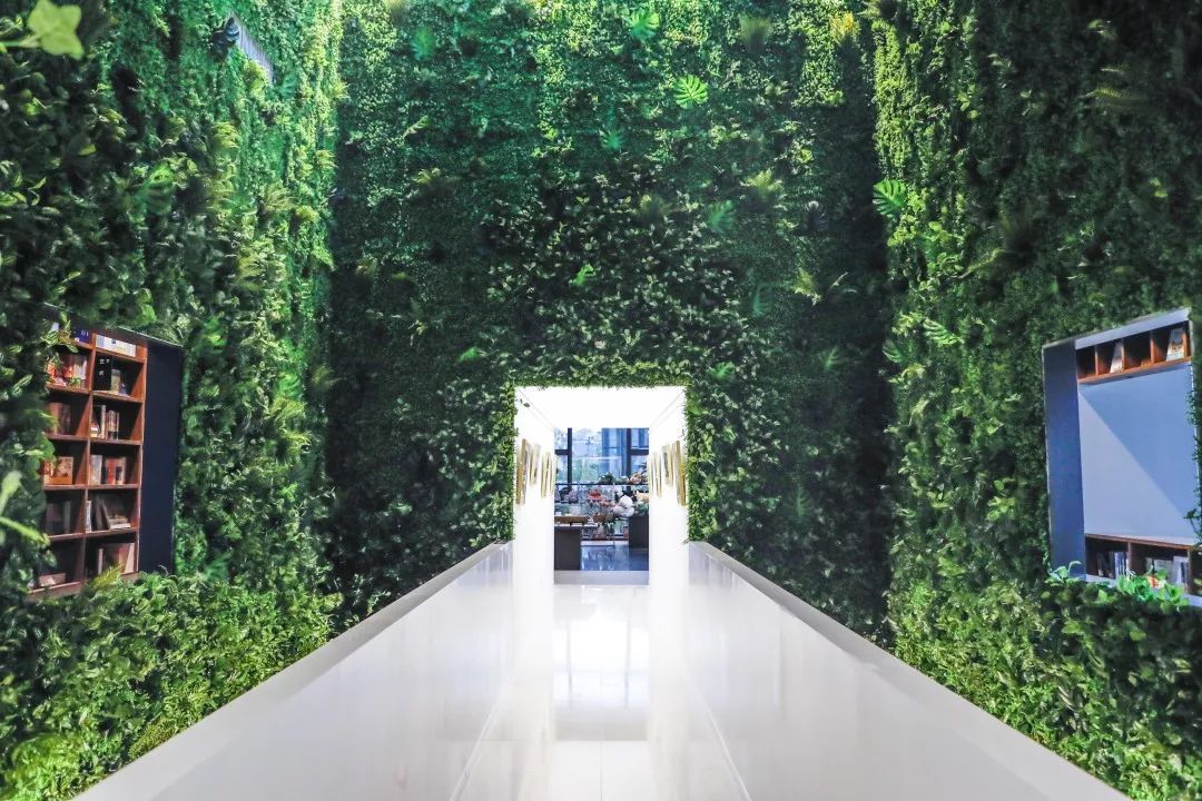 不同于言几又在其他城市的店面,1903概念店设计了超大的外摆区域,直接打开了室内空间,并在传统“产品区”、“咖啡区”的概念外,还打造了融环境、气氛、设施、空间于一体的特色区域——“中心绿植区”与“艺术长廊”,可以称得上是店中“理想国”的存在。