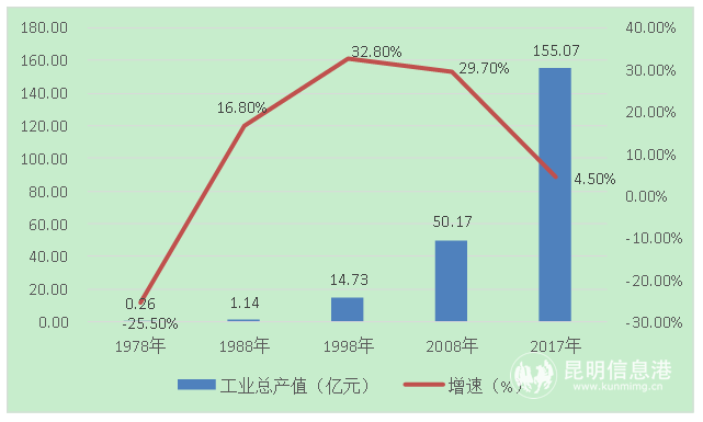 党的十八大以来,以习近平同志为核心的党中央高举改革开放大旗,果断作出全面深化改革的重大战略决策。十八届三中全会通过《中共中央关于全面深化改革若干问题的决定》,明确改革不再拘泥于经济体制改革领域,而是涵盖经济、政治、社会、文化以及生态文明五位一体的全面改革。面对错综复杂的国内外形势和持续加大的经济下行压力,嵩明县全面贯彻发展新理念,准确把握经济新常态,认真贯彻落实习近平总书记对云南发展的重要指示精神,主动服务和融入昆明区域性国际中心城市建设,以滇中产业聚集区(东区)核心区的站位重新审视嵩明的功能定位,按照“打基础、强产业、进位次、重生态、惠民生、奔小康”的总要求,描绘出建设宜居宜业新辅城的美好蓝图。党的十九大再次明确昭示了“坚定不移将新时代改革进行到底” 的决心,全县围绕重点领域和关键环节持续发力深化改革,加快跨越发展步伐,逐步形成了以农业为基础、工业为支撑、现代服务业加快发展的转型升级新格局。全县经济总量一年一个台阶,至2017年,全县地区生产总值达117.95亿元,年均增长11.4%,平均每年增长9.15亿元,年均净增经济总量约相当于20年前(即1998年)一年的总量,为1978年的184.30倍。其中,2016年地区生产总值突破百亿大关,达107.94亿元。
