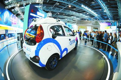参观者在北京中关村国家自主创新示范区展示中心参观自动驾驶汽车(2018年9月27日摄)。新华社记者 鞠焕宗摄