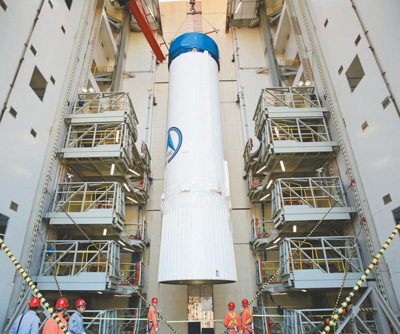 长征三号乙运载火箭吊装场面。中国航天科技集团一院供图