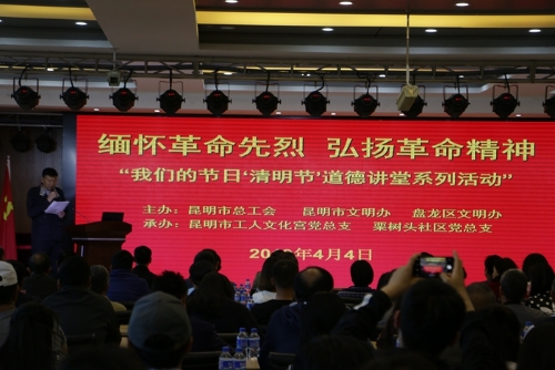 4月5日是中华民族传统节日——清明节,为大力弘扬、传承中华民族优秀传统文化,发挥传统节日的思想熏陶和文化教育普及功能,以节庆活动为抓手,引导广大职工认知传统、尊重传统、弘扬传统,增进爱党、爱国、爱社会主义的情感,根据昆明市、盘龙区文明办要求,昆明市工人文化宫于4月4日开展了2019年“我们的节日·清明节”主题活动。