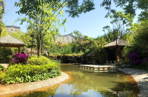 园林式的书院校园:校园建设总体规划设计特点鲜明。学校占地面积184亩,生均占地面积45.04平方米,校舍建筑面积77898.13平方米,生均校舍面积达28.63平方米。学校绿化率达46%,绿化面积73000平方米,生均绿化面积21.61平方米。