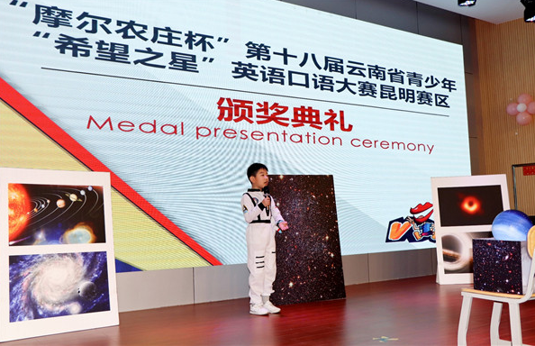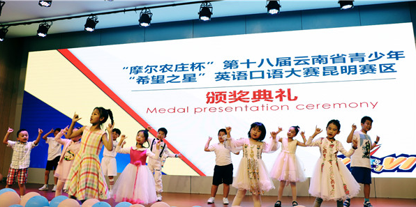 来自书林二小的尹卿宇荣获本次比赛的一等奖,他为现场观众带上精彩的英语演讲《My dream》,讲述了他遨游太空、探索宇宙的梦想。寻甸一中参赛选手集体送上一首英文歌《See you again》。由昆明悦音社英语培训学校挑选了优秀参赛代表合唱表演《Do Re Mi》掀起了本次颁奖的高潮。
