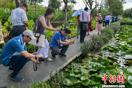 华文媒体高层人士参观海口凤翔湿地公园。骆云飞 摄