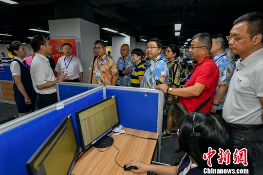 华文媒体高层人士参观12345海口智慧联动平台。骆云飞 摄
