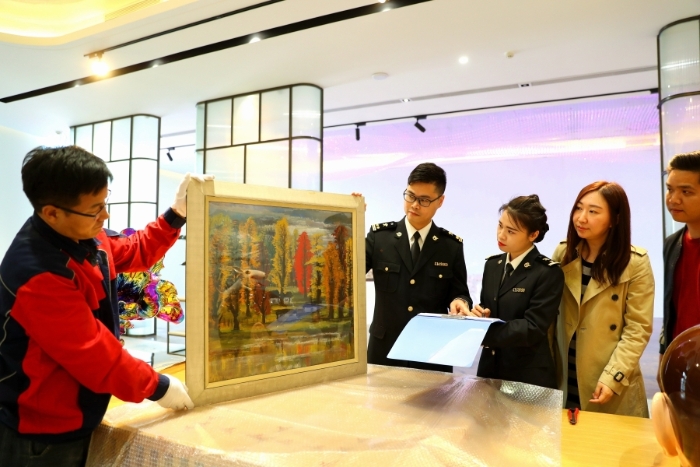 广州海关所属南沙海关关员现场监管参展艺术品