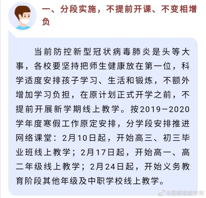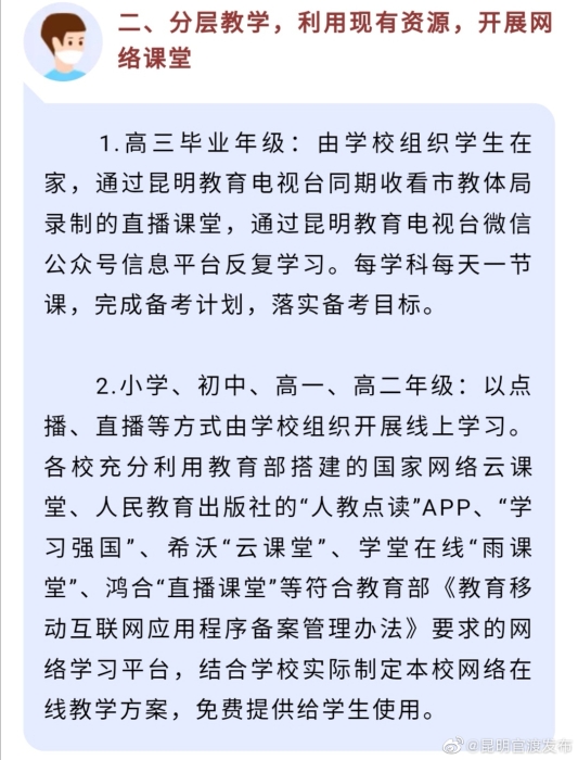 昆明信息港讯 机器人小明 #官渡要闻# #共同战疫# [加油][加油]【防控疫情——官渡区中小学实施防疫期间“一校一策”线上教学方案】
