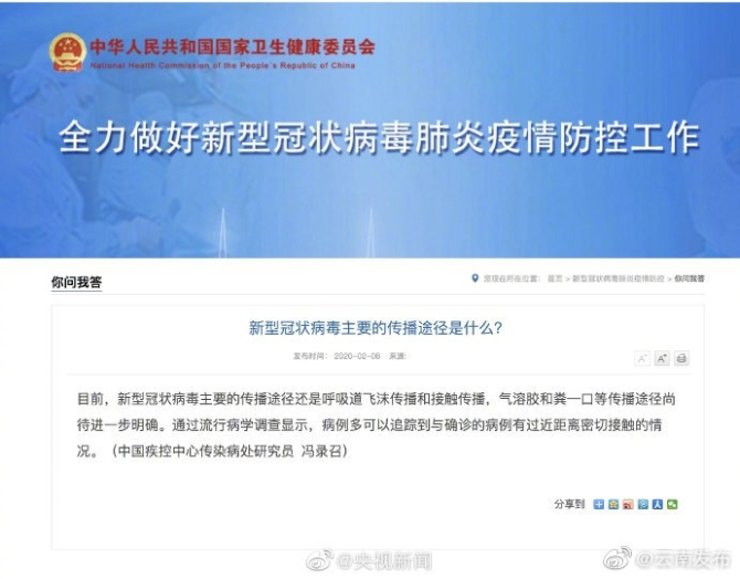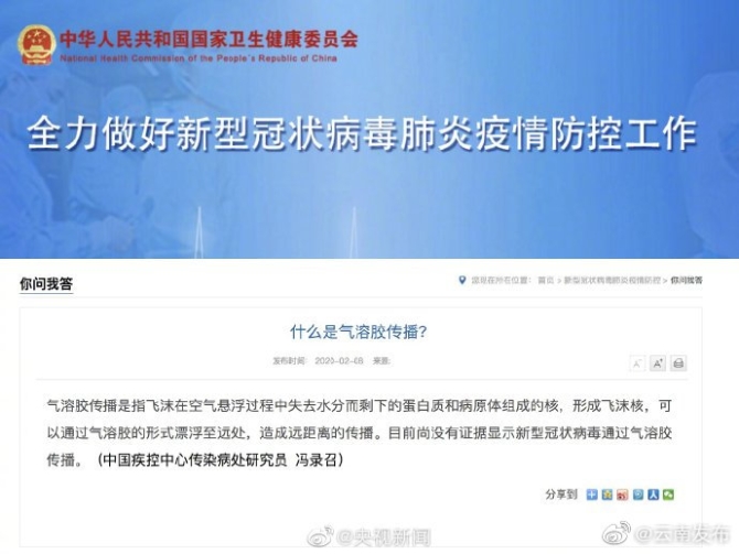 专家回应气溶胶传播:目前新型冠状病毒通过气溶胶传播尚无证据