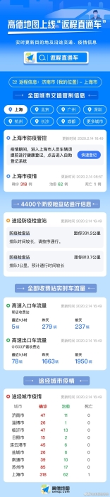 高德地图上线“返程直通车” 实时查目的地城市的防疫限行政策