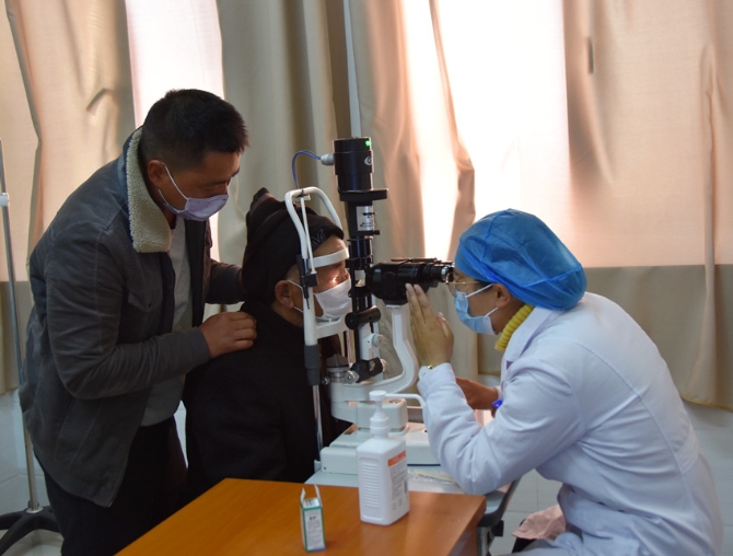77岁的眼病患者陆爷爷在家人陪同下,一早就来到眼科就诊