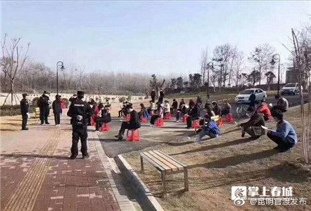 网友刊发的照片中,有的市民坐在红色板凳上,有的则蹲在一旁,每个人手里都持有一本手册,旁边还站着几位身着工装的工作人员。上方还配有一段“这是今天所有到湿地公园的闲逛人员,被全部喊到一起背防疫手册,背不熟的天黑不准回家。疫情没有结束!解封只是为了恢复生产,不是为了喊你们出门闲逛”的文字内容。