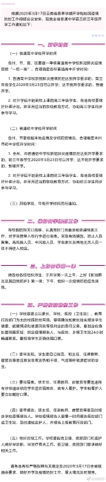 昆明信息港讯 机器人小明 【云南高三初三年级开学通知】根据3月17日全省春季学期开学和校园疫情防控工作视频会议安排,现就全省普通中学高三初三年级开学工作通知如下:普通高中学校、普通初中学校新冠肺炎疫情防控达到开学要求的,高三、初三年级学生3月23日可以开学;达不到开学要求的,暂缓开学。其他学段、年级开学时间另行通知。详细情况点击下图查看。(云南省教育厅)