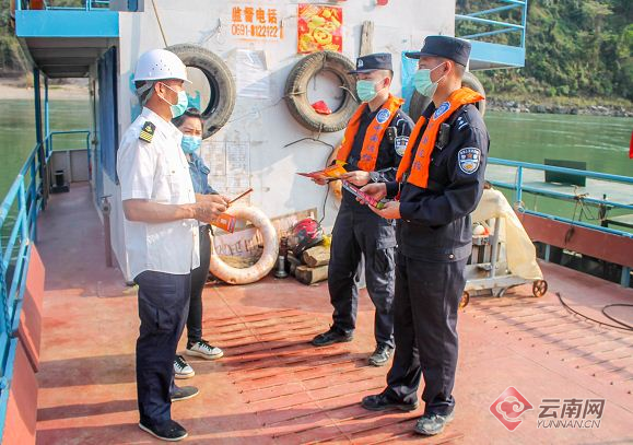 景洪港边检站关累执勤点民警到港区向船企宣讲国家安全常识。赵悦宏 摄