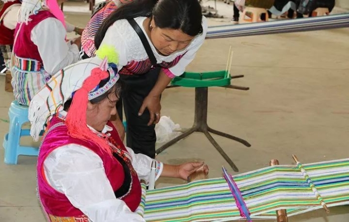 1.独龙毯现场纺织。(1名独龙族传承人)