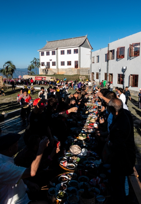 作品简介:2019年在红河县宝华乡参加一年一度的长街宴活动,身临其境,感慨万千,来自各地的游客兴奋不已参与到活动中,呈现出当地群众丰衣足食、幸福美满的场景。