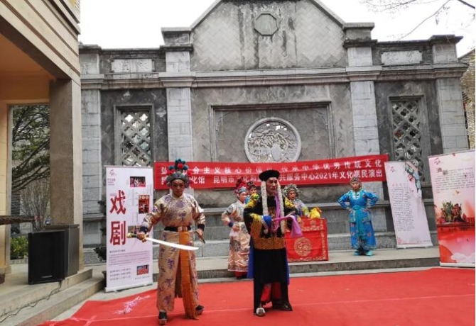 2021年由昆明市文化和旅游局主办,昆明市文化馆和昆明市文化和旅游公共服务中心联合承办的滇剧、花灯惠民演出活动在钱王街88号持续上演,演出旨在弘扬社会主义核心价值观,传承中华民族传统文化,让更多人观赏到云南传统滇剧和花灯戏,爱上戏剧艺术。