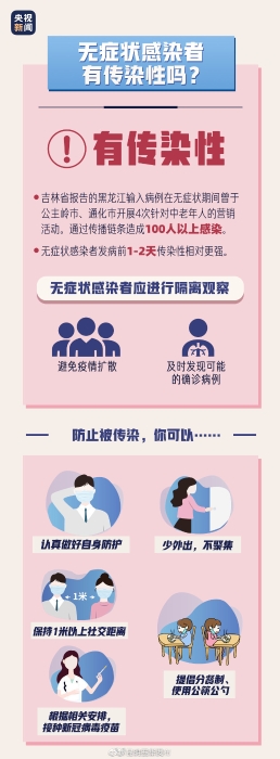 近日,一例无症状感染者在吉林省引发“1传100+超级传播”。无症状感染者具有传染性,且在发病前一到两天传染性相对更强。无症状感染者为什么增多了?曾是无症状感染者能接种新冠疫苗吗?如何进行自我筛查?戳图了解↓ (@央视新闻 )