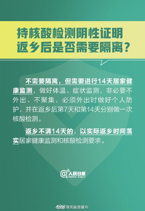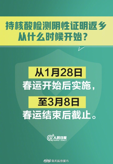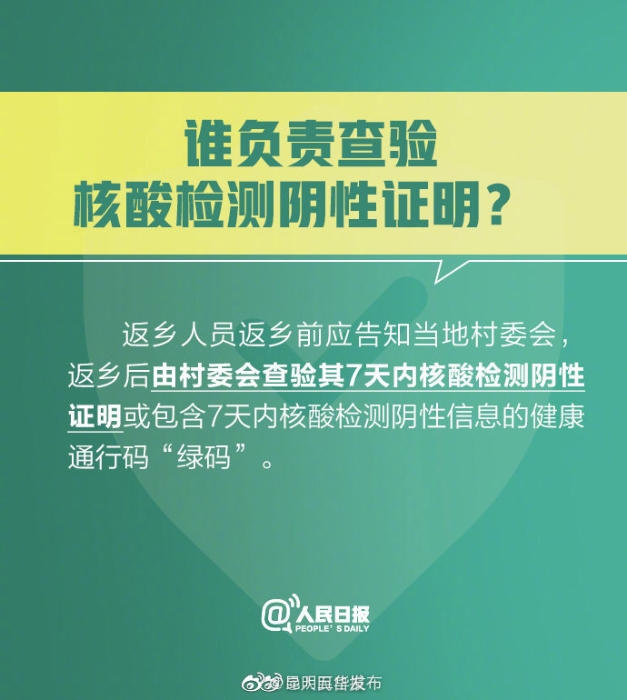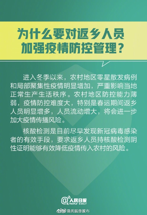 ①#返乡人员指从外地返回农村地区人员#;②返乡人员可在出发地或目的地的任意一家有核酸检测资质的医疗机构、疾控机构或第三方机构检测;③返乡后由村委会查验;④持核酸检测阴性证明返乡时间为1月28日—3月8日;⑤#返乡不满14天以实际返乡时间居家监测#。转发周知!