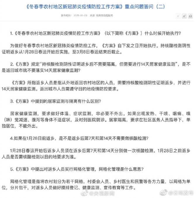 据国家卫健委,①#返回城市人员需遵守目的地防疫要求#。②居家健康监测,要求做好体温、症状监测,非必要不外出。如果出现发热、干咳、咽痛、嗅(味)觉减退、腹泻等身体不适症状,及时到医院就诊。居家隔离,要求在社区医务人员指导下,单独居住,不能外出。更多↓(央视新闻)