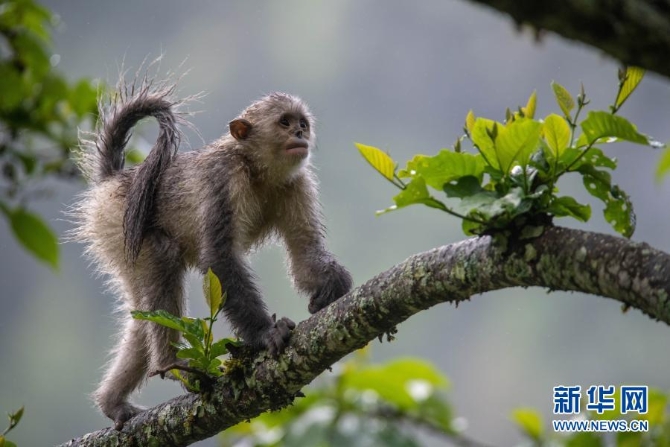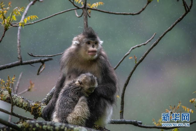 这是云南迪庆藏族自治州香格里拉滇金丝猴国家公园里的滇金丝猴(2020年5月23日摄)。新华社 记者胡超/摄