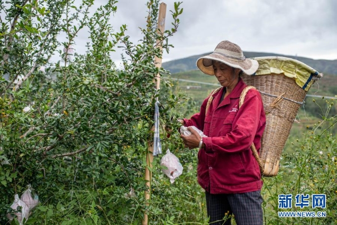 云南省会泽县娜姑镇牛泥塘村童盟种植专业合作社的农民在采摘石榴(2020年9月29日摄)。新华社 记者胡超/摄