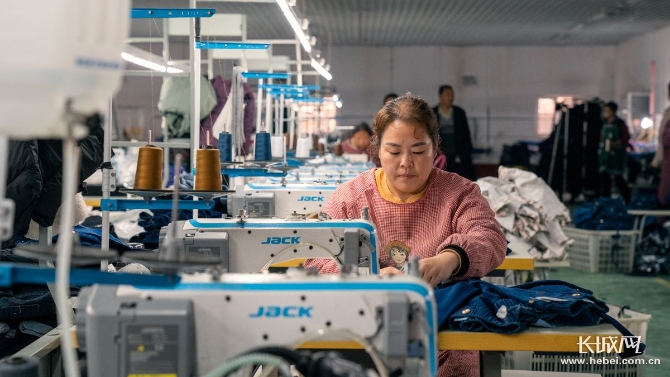 图为上闫庄乡易地扶贫后续产业多利服装加工厂。长城网记者 康义涵 摄
