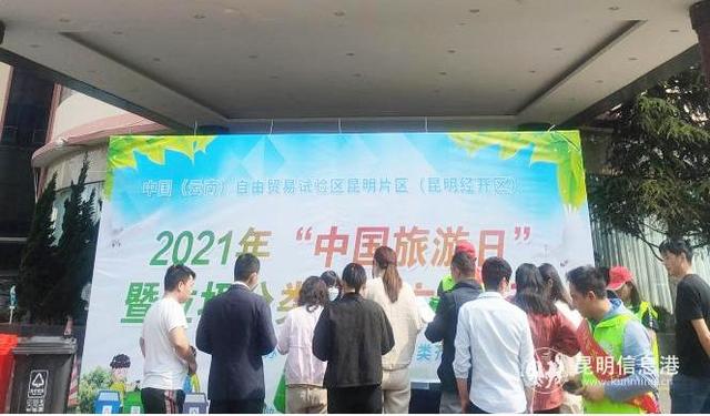 昆明信息港讯 4月28日,中国(云南)自由贸易试验区昆明片区(昆明经开区)社会事务局开展2021年“中国旅游日”暨“垃圾分类”主题宣传活动。