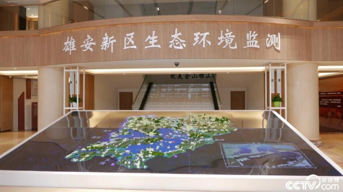 监测中心“智慧”元素满满。这里有雄安生态环境共享体验中心,利用电子沙盘、VR沉浸式体验等技术,建立起雄安新区全域生态环境及实验室实景操作沉浸式体验。