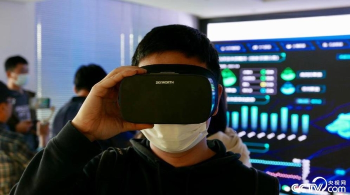 记者正体验5G VR视频监测,浏览监测中心所监控的实时数据。
