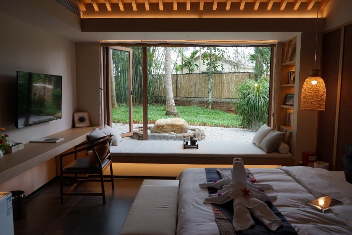 在海口市演丰镇瑶城村,曾经的一座古村落摇身一变,成为“网红”民宿。据了解,当地在尊重和保护传统遗存的基础上,将原有废弃民居进行设计改造后,重新整合为不同主题的特色院落,打造集民宿旅居、田园康养、商务办公、高标准农田种植、农业体验于一体的江东新区“田园会客厅”。