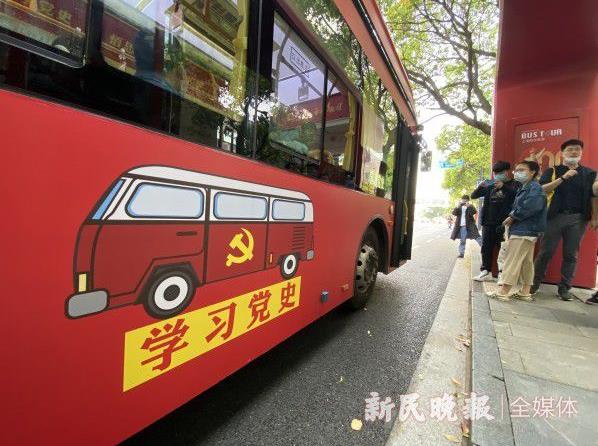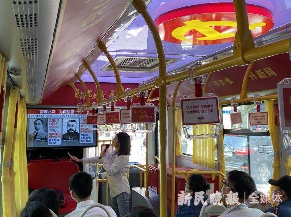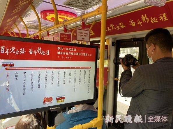 乘上党史巴士,记者团一行置身于一片“中国红”的海洋。围绕“百年党史在上海的精彩演绎”这一主线,党史巴士仿佛一根“针”,途径渔阳里、中共二大会址、五卅运动纪念碑、外滩陈毅广场、浦东开发陈列馆等20多处红色地标,把上海珍贵的红色资源串点成线,将历史故事和现实场景相结合,打造出一堂跨越浦江两岸、贯穿百年历史的精品党课。