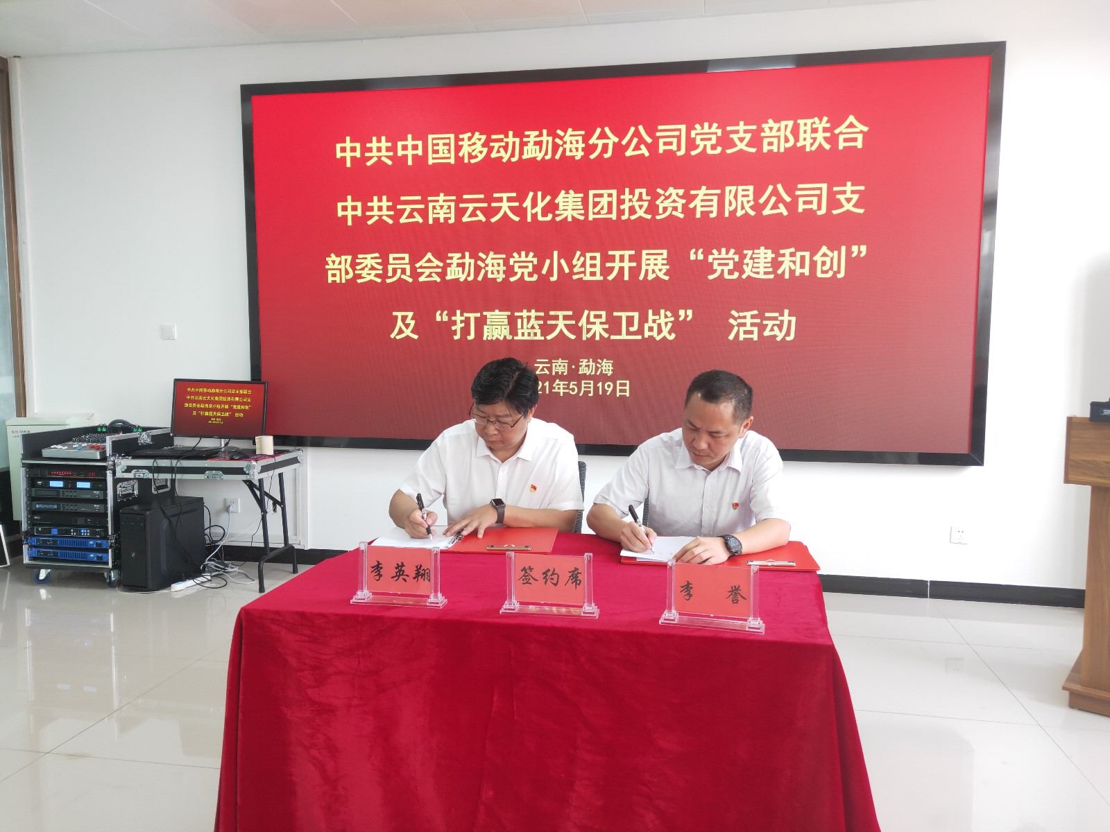 2021年5月9日上午,中国移动勐海分公司党支部联合云南云天化集团投资有限公司支部委员会勐海党小组在曼香云天与中国移动勐海分公司党建和创勐巴拉5G项目点开展“党建和创”及“打赢蓝天保卫战”活动,党支部书记李英翔等10人参与此次会议。