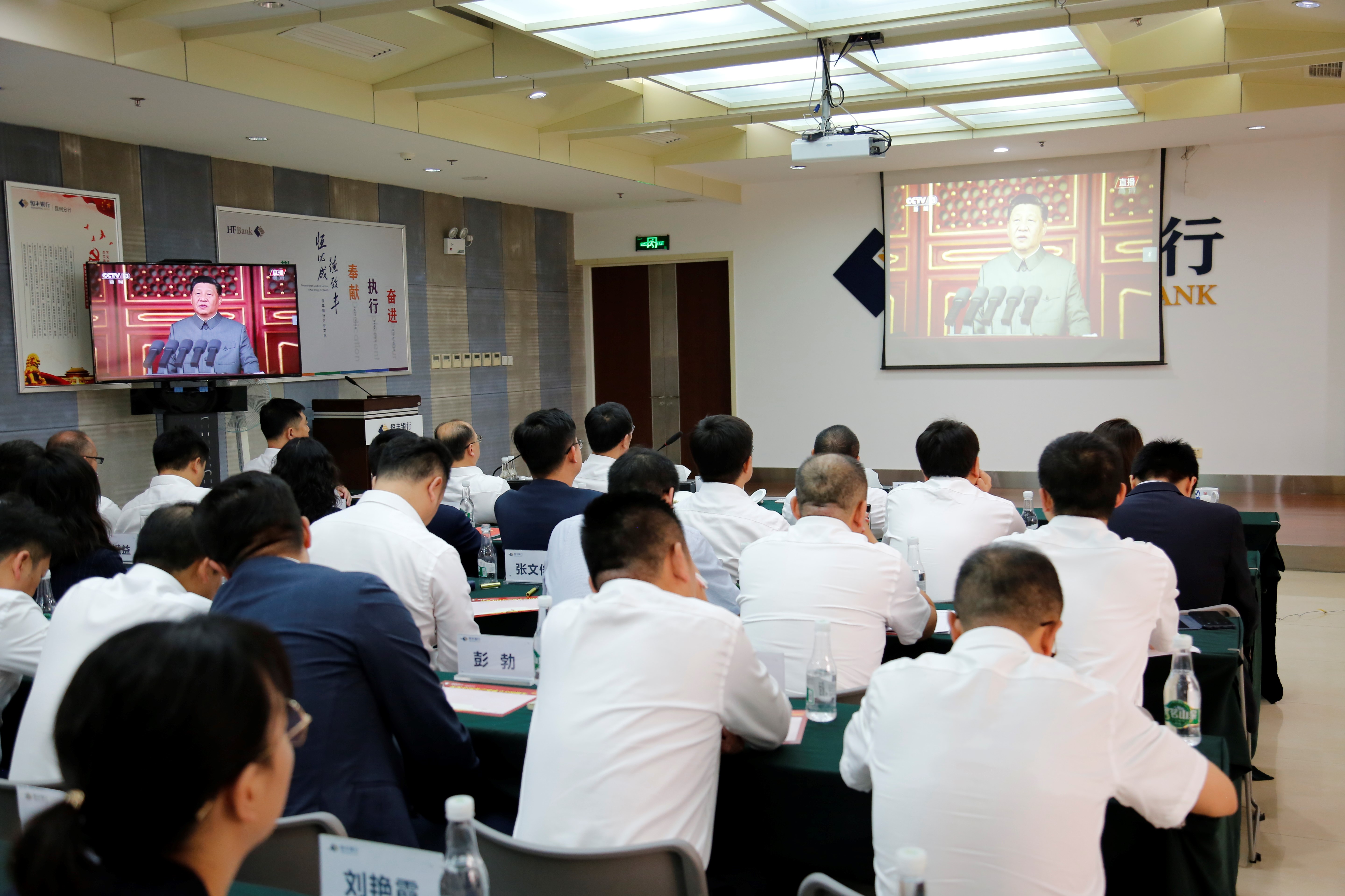 7月1日上午8时,庆祝中国共产党成立100周年大会在北京天安门广场隆重举行,恒丰银行昆明分行组织全体党员干部、预备党员、员工代表集中收看庆祝大会直播盛况,热烈庆祝中国共产党百年华诞!