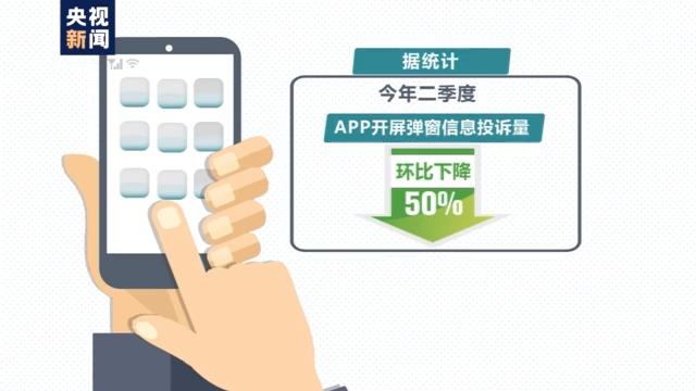 据统计,今年二季度App开屏弹窗信息投诉量环比下降50%;用户使用量排名前100位的App,开屏信息难以关闭问题发现率由69%下降到1%,而利用弹窗误导用户点击跳转问题的发现率,由90%下降至12%。