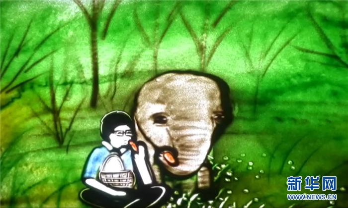 【沙画看大象】再现小象“羊妞”与“象爸”的晨与昏