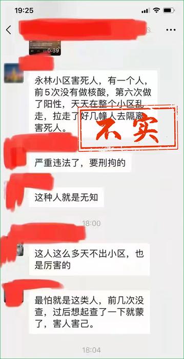 近期,网络上传播“永林社区一老太前5次核酸均未做,第6次检出阳性”“永林新村有人翻墙外出感染他人”等信息: