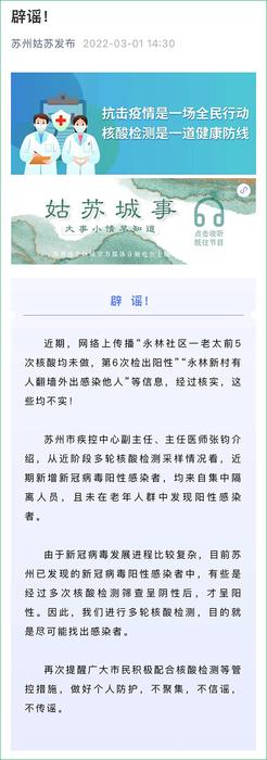 江苏苏州:一老人前5次核酸检测未做,第6次检出阳性?有人翻墙外出感染他人?都是假消息!