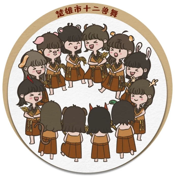 楚雄彝族民间传跳的十二兽舞,又名“母虎舞”,是千百年来一直流传在楚雄彝族地区的一种传统民俗活动,是彝族原生虎图腾崇拜中,以祭拜母虎为主要内容的原始祭祀活动。