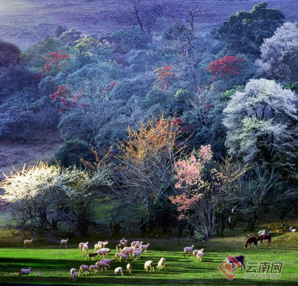 去那色峰、凤凰谷、菌子山看山,“我见青山多妩媚,料青山见我应如是”;在大海草山邂逅草原风光,“风吹草低见牛羊”;在罗平追寻“儿童急走追黄蝶,飞入菜花无处寻”的田园风光,在罗平九龙瀑布群感受“雪净鲛绡落刀尺,大珠小珠飘随风”的“瀑布之约”。