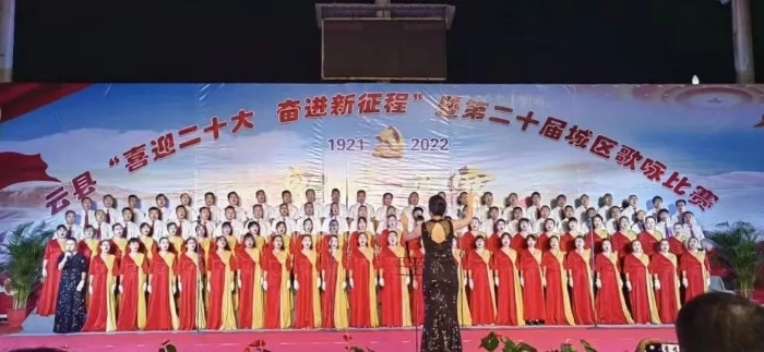 五是举办“喜迎二十大 奋进新征程”歌咏比赛。为迎接党的二十大胜利召开,献礼中国共产党成立101周年,团结引领广大干部群众坚定听党话、感党恩、跟党走,建功新时代、争创新业绩,6月28日,云县在滨河公园灯光球场举办“喜迎二十大,奋进新征程”暨第二十届城区歌咏比赛。县直机关单位、系统、部门、行业共组建28支参赛队伍,用深情而激昂的歌声表达了对中国共产党的敬仰之情,展现了红心向党、积极向上的精神风貌。