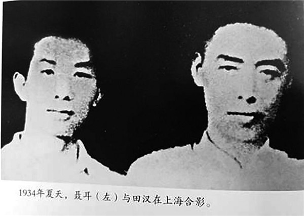 1934年夏天,聂耳(左)与田汉在上海合影。