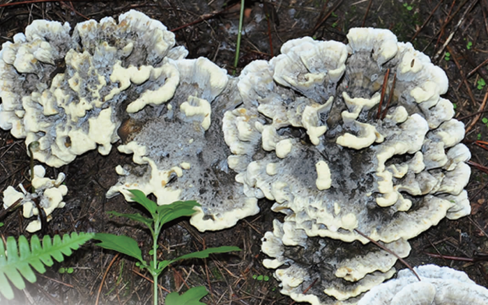 小哨社区宣传委员毕冬琼,便是该社区众多包山拾菌者之一,她家承包了700亩山林,每年承包费13万元。“这种粉色的篮子,一是为了保护野生菌不被游客踩到,也是为了防雨防晒,让野生菌长得更好。”毕冬琼用手轻轻拨开干巴菌窝附近的杂草,里面露出刚采摘完后留下的干巴菌的白色嫩肉。据毕冬琼介绍,她家的山头今年出了130公斤干巴菌,6月的雨水一来,干巴菌就冒出土。到10月中旬,卖干巴菌的收益就可以结算了。