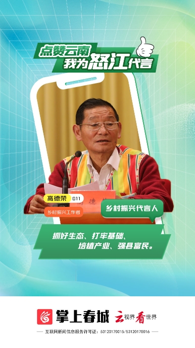 7月22日,2022年云南·昆明网络文化节系列活动“点赞云南 我为家乡代言”手机形象网络征集活动正式启动,面向全省征集典型人物故事,让一个个普通网民成为主角,登上封面为家乡代言,讲云南故事,展云南形象。 活动吸引了市民朋友的广泛关注,自启动以来持续火爆,每天均收到大量投稿,今天登上封面的就是由中共怒江州委网信办推荐“乡村振兴”代言人高德荣。