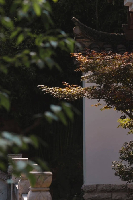 寻一方野石入定,听高树蝉鸣,空灵而又悠远。人间烟火在此好似全然隐去,尘世烦忧也褪去颜色,人也心如止水。万物皆隐,唯有空与静。