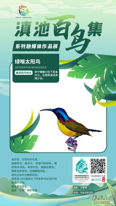 为展现云南昆明生物多样、生态丰富的魅力,进一步提高市民网友对云南鸟类的认知,向海内外展示云南昆明良好的生态环境及城市形象。2022年云南.昆明网络文化节的单元活动之一“滇池百鸟集”融媒体作品互动创作活动于2月23日全面上线,活动由昆明市委网信办主办,昆明信息港承办、昆明市鸟类协会、昆明学院美术与艺术设计学院鸟绘花影团队协办。