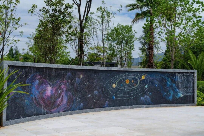 普吉公园总建筑面积约9166.57平方米,主要包括公园广场、星空长廊、星云墙、花池休闲空间、雨水花园、儿童娱乐区、立体摆花造型等。普吉公园结合绿美城市、公园城市、世界春城花都、海绵城市绿地、科普宣传、运动健康、生物多样性等元素,以现代化的风格展现星空主题。